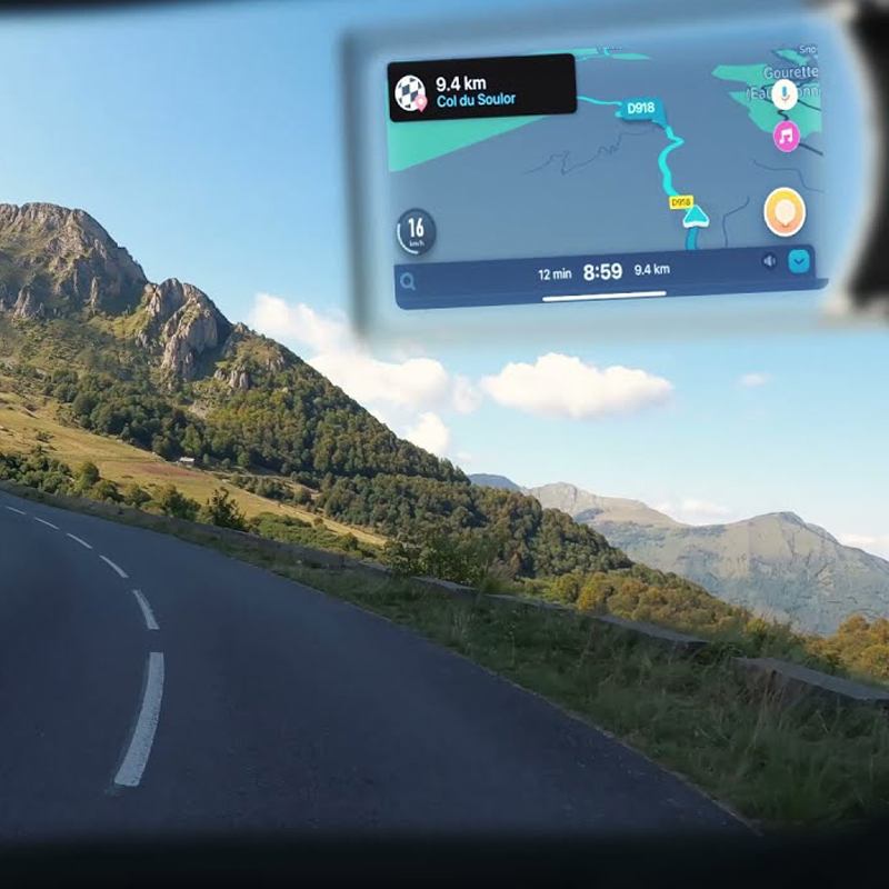Head-up display compatible with all types of headphones and glasses: GPS, Intercom and music in your field of sight, controlled by voice control.