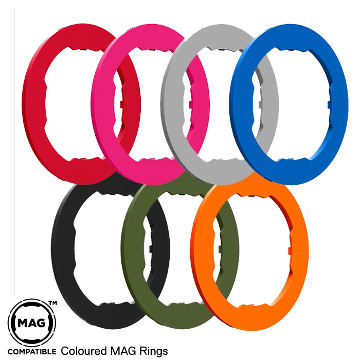 Coloured Ring for MAG CASE ปรับเปลี่ยนเฉดสีได้ตามต้องการ มี 6 เฉดสีให้เลือก Blue, Grey, Green, Pink, Red, Orange เพื่อให้ Quad Lock MAG™ Case ของคุณโดดเด่นไม่เหมือนใคร Price : 400 THB